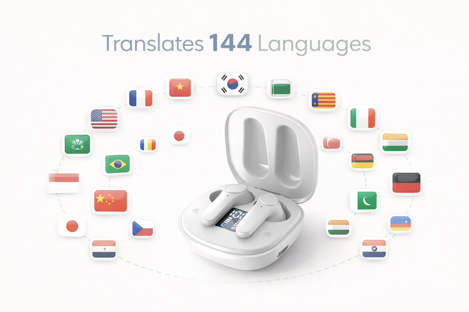 Ces écouteurs traduisent jusqu’à 144 langues différentes.