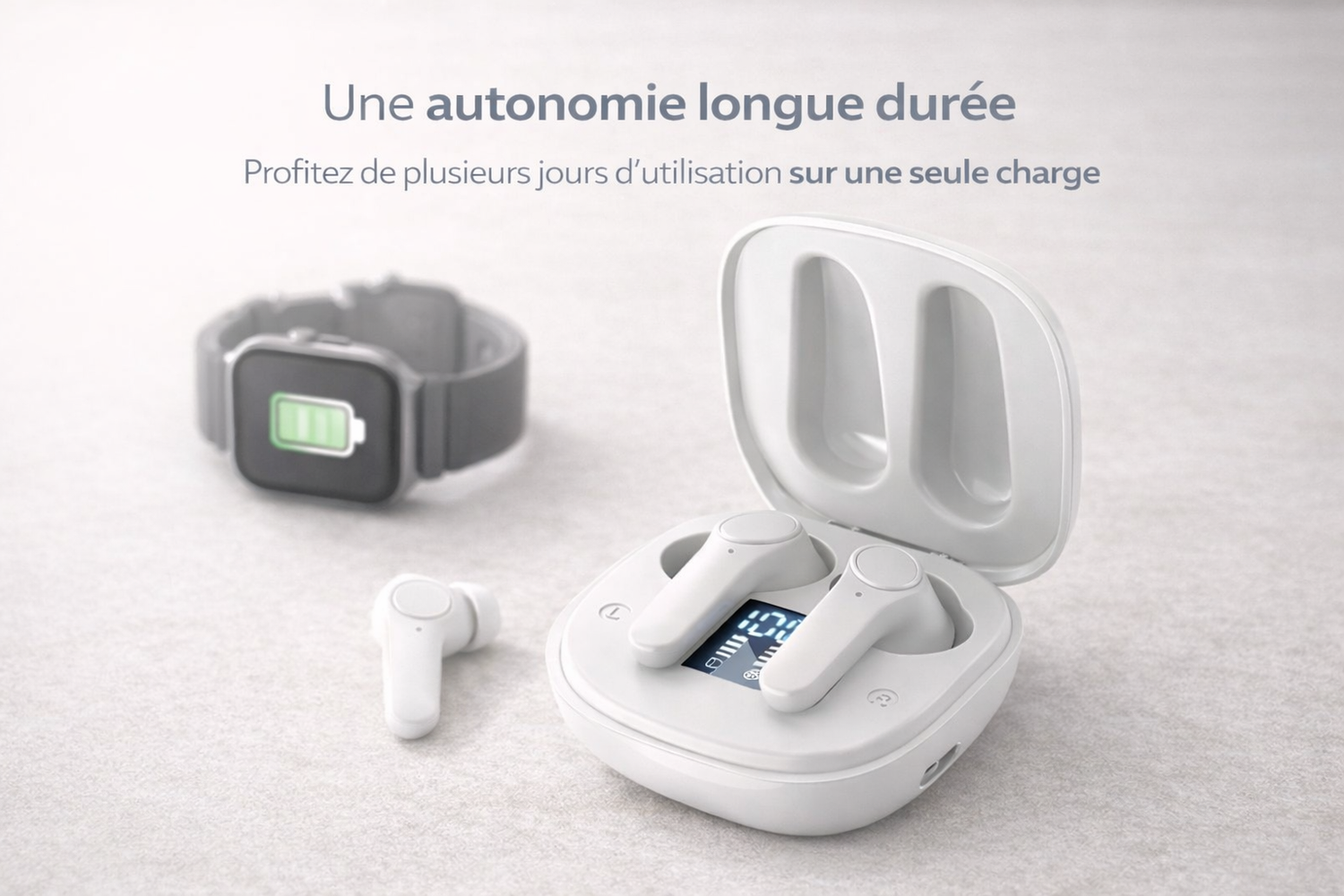 Les écouteurs offrent plusieurs heures d’utilisation, complétées par le